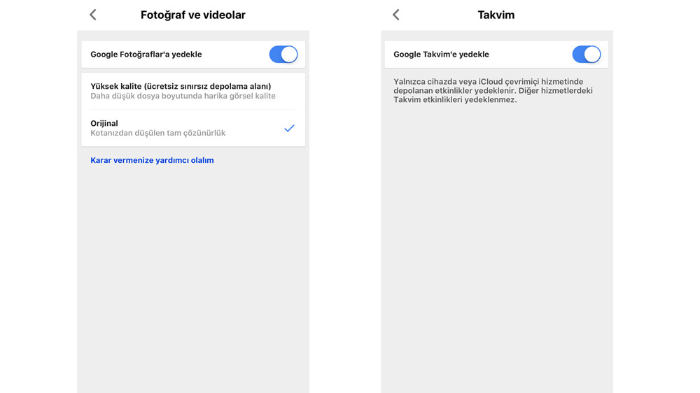 Bu madde sadece iPhone değil Android kullanıcıları için de geçerli bir yöntem. Hatta iPhone’dan Android’e geçmeyi planlayan kullanıcılar için kurtarıcı dahi olabilir. Yapmanız gerekense çok basit. Bir Gmail hesabına sahip olmak ve Google Drive’ı cihazınıza indirmek. Google Drive uygulaması üzerinde açık olan Gmail hesabınıza yedeklemeyi gerçekleştirebilirsiniz. Bunun için Drive uygulamasına girip sol üst köşedeki alt alta duran üçlü çizgiye tıklamanız gerekiyor. Oradan Ayarlar’ı seçip Backup (yedekleme) seçeneğine tıklayabilirsiniz. Burada karşınıza çıkan yedekleme ekranı üç seçenek sunuyor: Kişiler, Takvim etkinlikleri, Fotoğraf ve videolar. Yedeklemek istediğiniz verileri seçip Yedeklemeyi Başlat derseniz verilerinizi Google Drive’a yedekleyebilirsiniz.