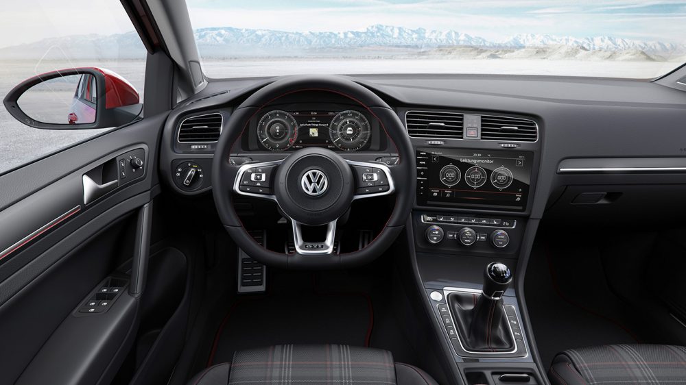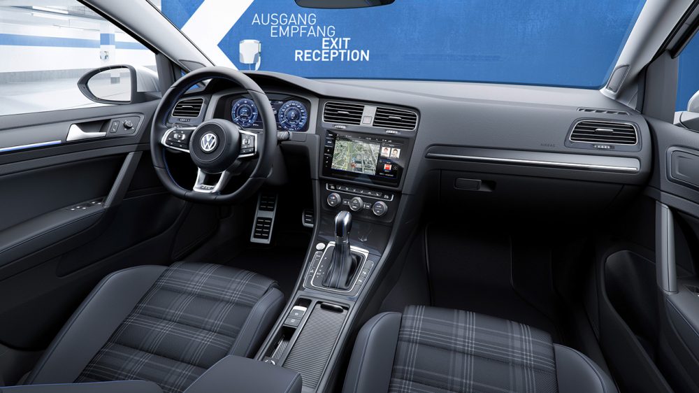 Volkswagen’in kompakt hatchback ligindeki temsilcisi Golf’ün yeni yüzü, baştan tasarlanan ön ve arka tamponlar, Xenon ve full-LED teknolojisine sahip yeniden tasarlanmış far ve gündüz farları karakteristik özellikleri olarak öne çıkıyor. Dış tasarımda bir araba için en önemli ögelerden olan ışıklandırma ve jantlarda, Volkswagen bu sefer yoğun mesai harcayıp geçmişteki jenerasyonların üzerinde bir iş çıkarmış diyebiliriz. Volkswagen, 2017 model serisiyle birlikte Golf ailesinin mevcut renk paletine yeni seçenekleri de getirmeye hazırlanıyor. 2017 Volkswagen Golf’ün içerisine girdiğimiz de yenilikler devam ediyor. 2017 Volkswagen’in en üst donanım seviyesinde aracın merkezinde yer alan renkli ve dokunmatik multimedya sistemi, donanım seviyelerine göre 6.5 inç boyutundan başlayıp 9.2 inç büyüklüğe kadar değişiklik gösteriyor. 2017 Golf’ün multimedya sistemi sesle kontrolün yanı sıra segmentinde ilk kez sunulan hareket algılama yeteneği sayesinde uzaktan kontrol edilebilir şekilde kullanılabilecek. Yeni nesil Golf dahilinde sunulacak olan kokpit göstergelerinin ve navigasyonun yer aldığı 1440×540 piksel değerine sahip ana ekranda, navigasyon sistemi iki ve üç boyutlu olarak görüntülenebilecek.