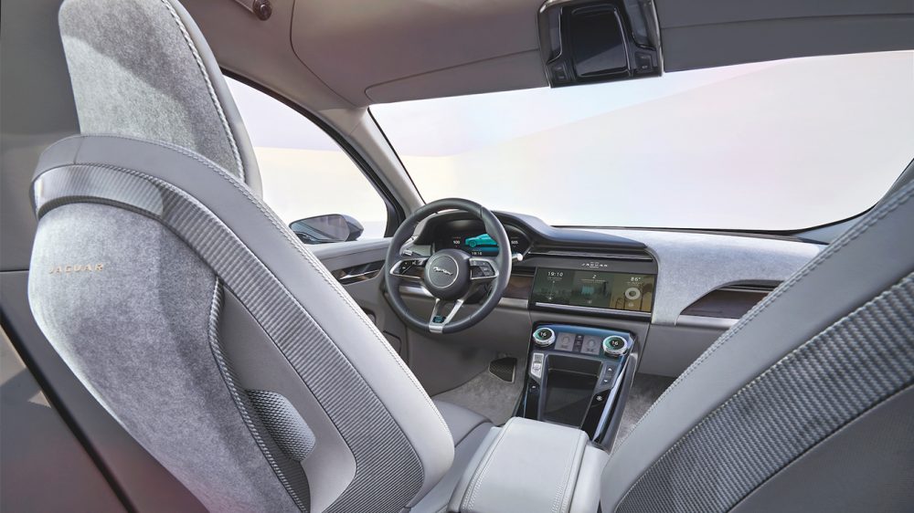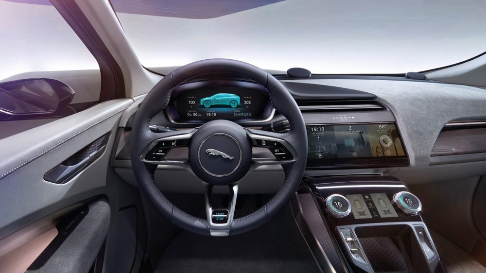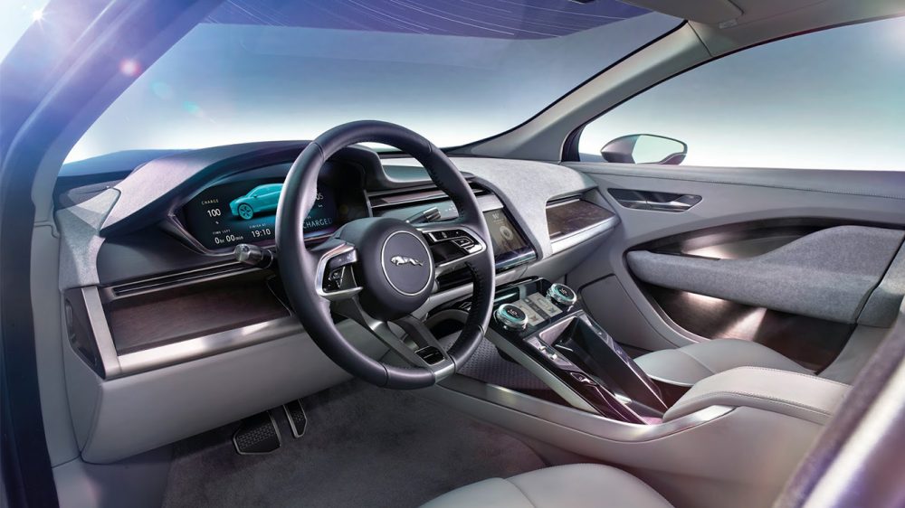 Aracın içerisine girdiğimizde ise bambaşka bir dünya ile karşılaşıyoruz. Jaguar’ın en güçlü yanlarından biri olan tasarım anlayışını burada da görmek fazlasıyla mümkün. İçeride, panoramik cam tavanın etkisini pekiştirdiği bir hayli ferah ve geniş bir yaşam alanı sunuluyor. Jaguar, I-Pace’e araç içerisinde sunulan alan, diz mesafesi ve bagaj hacmi konusunda fazlasıyla güveniyor diyebiliriz. Ön konsolda ise aracın teknolojisini yansıtan oldukça sadece, şık ve teknolojik bir kokpit yer alıyor. Özellikle jaguar’ın başlatma düğmesini direksiyonun üzerinde konumlandırması alışılması biraz zor olsada fark yaratan bir detay olmuş diyebiliriz. Direksiyonun arkasında ve araç içerisinde yer verilen imza plakaları da Jaguar’ın İkinci Dünya Savaşı’nın ardından ürettiği XK120 modelinde bile gördüğümüz zarif detaylar arasında yer alıyor.