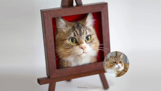 Wakuneco olarak bilinen sanatçı, portreleri tamamen elle yapmak için yün keçe ve diğer malzemeleri kullanıyor. Sanatçı, portreleri önden bakarken boş bir arka plan üzerinde yapıyor. Böylece onları bir kimlik fotoğrafına benzetiyor. Bazen, kedilerini kaybetmiş insanlardan sipariş alan sanatçı, kedi portrelerini yaparak sahiplerine bir anı bırakıyor. Ancak bu portrelerin hazırlanması kolay bir süreç değil. Portrelerin tamamlanması tam bir ay sürüyor. Bu yüzden sanatçı tüm istekleri kabul edemiyor. Şu anda sadece Japonya’nın içinden siparişler kabul edilmekle birlikte, Instagram’da bir gün yurt dışına da işler yapmak istediğini söylüyor.