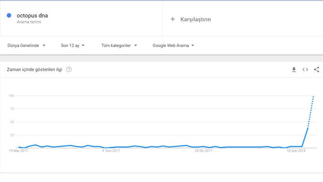 IGH’te araştırma yapan doktorlardan birinin ahtapot DNA’sını incelediği ve bunun üzerine çalıştığı söylendi. Ahtapotların DNA’larının benzersiz olduğunu paylaşan dizi bu konuda da yanılmıyor. Oldukça benzersiz DNA’ya sahip olan ahtapotlar araştırmacıları büyüleyebiliyor. Tabii dizinin ardından izleyicileri de etkilemiş gibi görünüyorlar. Zira bir yıldır tek tük aranan “octopus dna” Jessica Jones’la beraber ciddi bir artış göstermiş. Arama trendlerinde görüntüleyebileceğiniz verilere göre diziyi izleyen Google’da araştırmalara başlamış gibi görünüyor. Dizinin 2. sezon fragmanını haberin devamında izleyebilirsiniz.