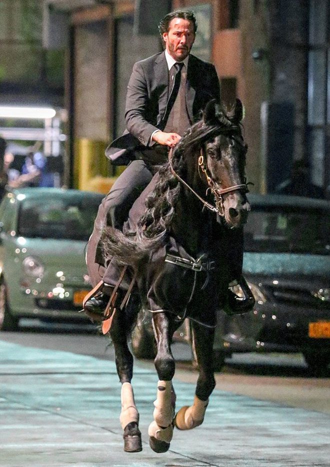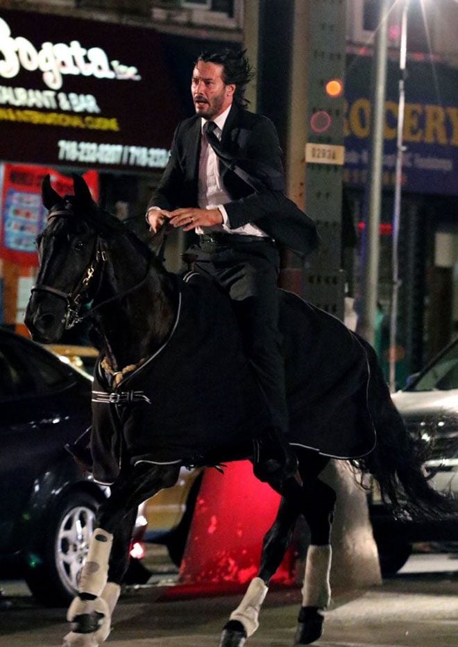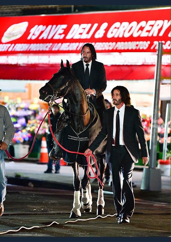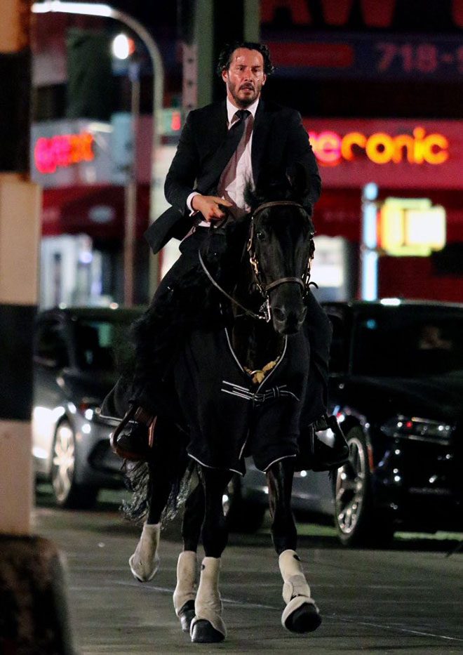 Çekimleri devam eden John Wick 3, setten fotoğraflarla heyecanımızı artırıyor. Keanu Reeves’in at üstünde tehlikeli bir kovalamacaya dahil olduğu görünüyor.