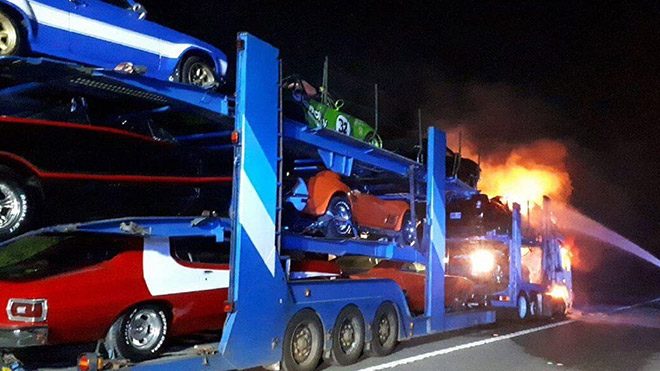 Araçları taşıyan kamyonun henüz belirlenemeyen bir sebepten ötürü seyir halinde yanmasıyla başlayan olayda, Transformers başta olmak üzere ikon haline gelmiş bazı otomobillerin bir arada oluşu işleri bambaşka noktaya taşıdı.