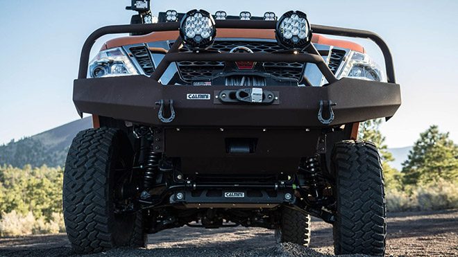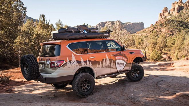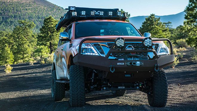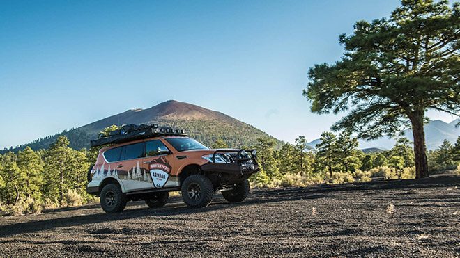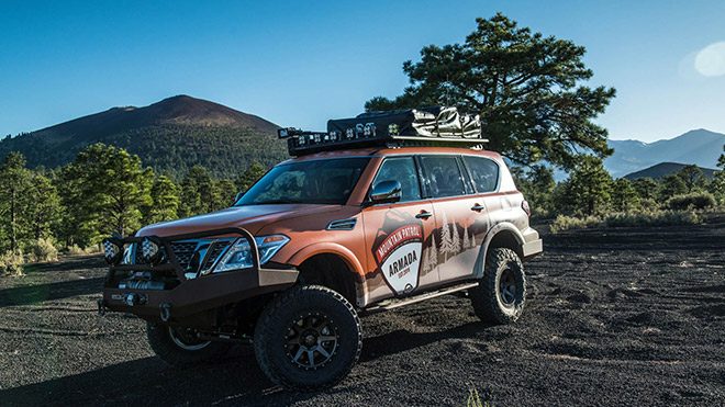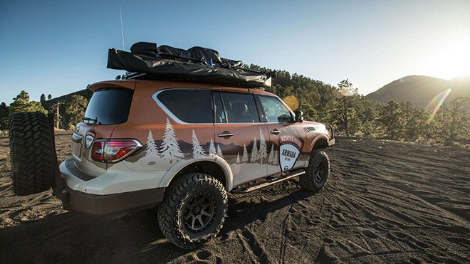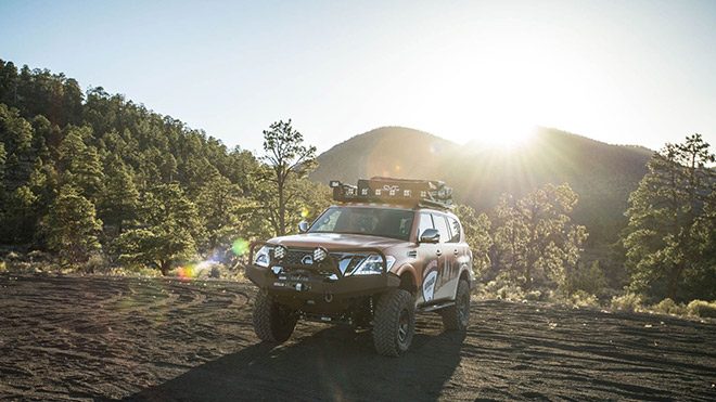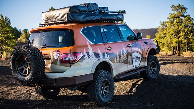 Amerika’da düzenlenecek olan özel bir fuar kapsamında sergilenecek olan Nissan Armada Mountain Patrol, elektronik ortamın ardından tozu dumana katmak için gün ışığında.