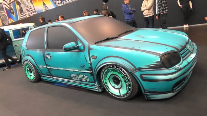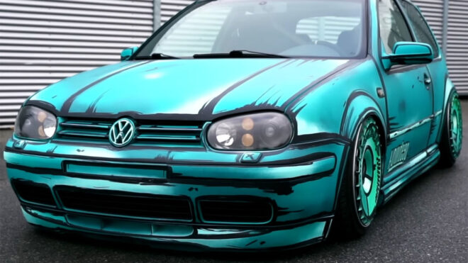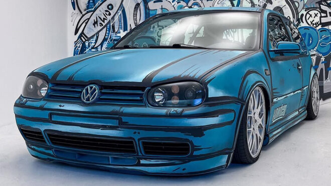 Önce mavi daha sonra açık yeşil versiyonları hazırlanan bu özel Volkswagen Golf MK4 GTI, birçok başka projeye ilham kaynağı olabilir, 2023’te karikatürize edilmiş çok fazla sayıda otomobil ya da kamyon gibi araçlar karşımıza çıkmaya başlayabilir.