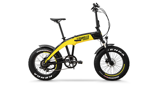 Motosiklet pazarının efsane firmaları arasında bulunan Ducati, elektrikli bisiklet portföyünü genişletmeyi sürdürüyor. Şehir içi kullanımı ve otomobil arkasında taşımak için çok iyi olan bu katlanabilir modellerden ilki yukarıda gördüğünüz Scrambler SCR-E oluyor. Sarı ile siyah karışımı rengiyle dikkat çeken bisiklet, ufak ancak araziye uygun kalın lastiklere sahip. 374.4 Wh pil paketiyle 70 km menzil sunan model, önde süspansiyon sistemi taşıyor ve disk frenler kullanıyor. Bir diğer model siyah renkli fakat kırmızı detaylı Urban-E oluyor. Bu katlanabilir bisiklet de ufak lastiklere sahip ve disk frenler ile süspansiyon sistemi barındırıyor. Elektrikli bisiklet modelinin 378 Wh pil paketiyle 70 km‘nin biraz üzerinde menzili bulunuyor. Son bisiklet ise tamamen siyah gövdeye ancak sarı detaylara sahip disk frenli ve süspansiyonlu Ducati Scrambler SCR-E Sport oluyor. Normal yola özelleştirilen katlanabilir bisiklet, 468 Wh pil paketiyle 80 km menzil getiriyor. Ortak olarak yerleşik LED aydınlatma kullanan bisikletlerin satış fiyatları ise henüz açıklanmış değil.