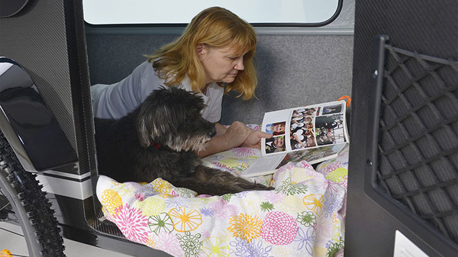 Görebileceğiniz üzere bir kişinin içerisinde rahatlıkla uyuyabileceği alana sahip olan bu karavanlar, karbon fiber versiyonlarında 42 kg ağırlığa sahip. Yani aşırı büyük bir ağırlık getirmeyen ürünler, yürür yapıda 50 kg, kamp anında ise 190 kg kadar yükü rahatlıkla taşıyabiliyor. Bu ModyPlast imzalı karavanların tek kötü yanı ise fiyatları oluyor. Modeller Avrupa’da tam 5 bin euro başlangıç fiyatına sahip. Bu fiyat 7 bin euro seviyesine kadar çıkıyor.