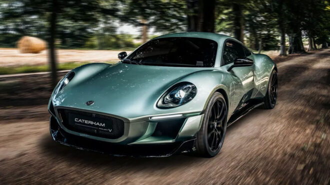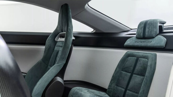 55 kWh lithium-iyon batarya paketi ile donatılan sportif elektrikli otomobil, 150 kW DC hızlı şarj ile 15 dakika gibi kısa bir sürede yüzde 20-80 arasını doldurabiliyor ve 400 km kadar karma menzil verisine sahip. Caterham’ın yeni baş tasarımcısı Anthony Jannarelly tarafından hayata geçirilen araç, maksimumda 230 km/s hızı görebiliyor. Normalde üç koltuk ile donatılan ancak istenirse dört koltukla da alınabileceği aktarılan Project V, oldukça sade bir yaşam alanına sahip. Modelin kokpiti retro ile modern çizgileri harmanlıyor, merkezde günümüz için ufak bir dokunmatik ekran yer alıyor. 19 inç ön ve 20 inç boyutunda arka jantları ile yol arasındaki bağlantıyı Michelin Pilot Sport 4S lastikler ile kuran Caterham Project V için üretim versiyonu, eğer bir aksilik olmazsa 2025 sonunda ya da 2026’nın başında gelecek, fiyat ise 80 bin euro altında olacak.
