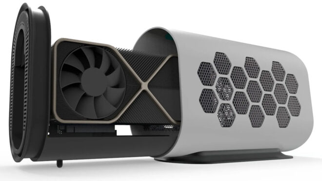 Alienware’ın CES 2022’de bir eGPU (Masaüstü ekran kartı takılabilen, genelde dizüstüler için hazırlanan bir aracı kutu) duyurusu yaptığını da belirtelim. Şık tasarımını aşağıda görebileceğiniz Concept Polaris isimli bu ürün, tam boyutlu çok büyük ekran kartlarına destek veriyor ve yatay yanında dikey kullanım desteğini getiriyor. Gücünü çift tercih edilen AC adaptörden alan ürün, bağlantısı Thunderbolt 4 üzerinden sağlıyor. Sıvı soğutma ile serin kalan ürünün ne zaman çıkacağı ya da kaça satılacağı belli değil.