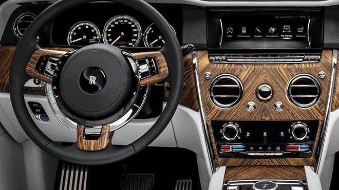 Adını kraliyet tacında yer alan mücevherden alan Cullinan, bunun hakkını vermek konusunda pek şüphe bıraktıracak bir model gibi gözükmüyor. Kullanıcılarının içeriye daha rahat erişebilmesi adına 40 milimetreye kadar otomatik olarak kendini alçaltabilen bir otomobil için bu pek de sürpriz olmasa gerek. İçeriye girdiğimiz bizleri ultra lüks deri döşeme ve bolca ahşap kaplamayla karşılayan aracın direksiyonu ailenin diğer üyelerine göre biraz daha ince bir yapıya sahip. Multimedya ekranının yanı sıra yüksek çözünürlüklü head-up display‘in de yer verildiği konsolda, “uçan kadın” dokunuşunun yer alması, sizi gerçekten köklü bir aracın içerisinde hissettirecek detaylar arasında. Arka koltuklarda iki farklı opsiyon sunduğunu açıklayan Rolls-Royce, istenilirse ortadan iki konsolla ayrılmış yapıyı, istenilirse tek standart modellerde gördüğümüz dizilimi getiriyor. Elektronik olarak ayarlanan koltuklarda ısıtma özelliğinin olduğunu da belirtmeden geçmeyelim.