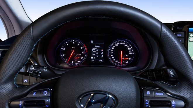 Dışarıda olduğu gibi içeride de yeni nesil i30’un kokpiti üzerinde yapılan performans değişimlerini barındıran aracın ub bölümünde büyüklüğü 8 inç olan iyileştirilmiş multimedya ekranına yer veriliyor. Standart hatlara ek olarak N logosunu taşıyan bir direksiyonla bizleri karşılayan kokpit içerisinde performans koltuklarıyla sürücüsüne performanslı bir sürüşte maksimum bir deneyim vadediyor. Aracın içerisinde performanslı sürüşler sırasında sürücünün maruz kaldığı G kuvvetinin bilgisinin paylaşıldığını da belirtmekte fayda var ki bu da gönlümüzü kazanan detaylar arasında.