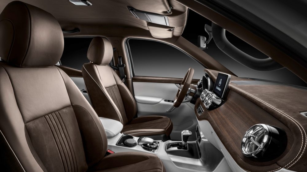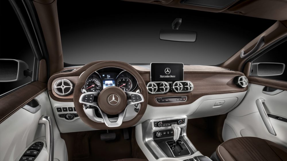 Concept Pickup Stylish Explorer ve Concept Pickup Powerful Adventurer olmak üzere iki farklı seçenekle kullanıcılara sunulacak olan Mercedes X- Class, geliştirilen şasi karakteriyle birlikte sürücülerin gerek off-road gerekse asfalt şartlarında maksimum konfor vadediliyor. Mercedes X-CLASS’ta 22 inç büyüklüğünde jantlar göze göze çarpan ilk detaylar arasında yer alıyor. Aracın en dikkat çeken ve radikal olarak nitelendirebileceğimiz arka LED farlar. Mercedes X-CLASS’a tamamen genetik ve özgü bir görünüm katıyor. Mercedes X-Class’ın iç tasarım hatlarında binek modelleri aratmayacak konforu ve çizgileri görmek mümkün. Merkezde konumlandırılan multimedya ekranı ve konsolda detaylandırılmış maun ve deri detaylar premium bir modelin gerekliliklerini karşılayacak donanımlar arasında yer alıyor.