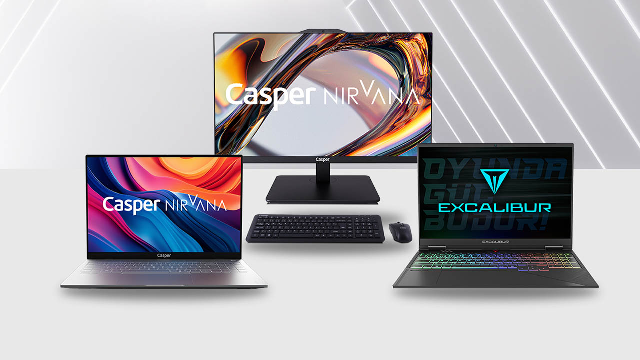 Casper’ın performans odaklı oyun bilgisayarı serisi Excalibur, yüksek işlem gücü, gelişmiş soğutma teknolojileri ve etkileyici tasarımıyla dikkat çekiyor. Gücünü en yeni donanımlardan alan Excalibur, rekabetçi arenada sınırları zorlamak isteyenler için ideal bir çözüm sağlarken; verimlilik ve konforu ön plana çıkaran Nirvana serisi ise şık tasarımı ve hafif yapısıyla hem iş hem de eğlence ihtiyacını karşılıyor.