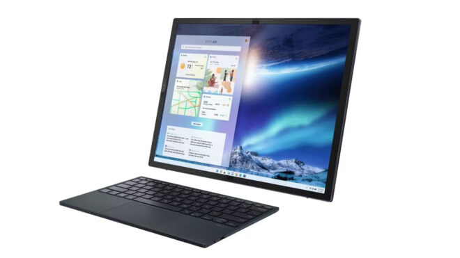 İstenirse dijital klavye, istenirse de ekran üstüne ya da dışarıya konulacak fiziksel klavye ile yönetilecek şekilde tasarlanan Windows 11 işletim sistemli katlanabilir dizüstü, ilk tanıtımda da söylendiği üzere gücünü Intel’in 12. jenerasyon Core i7 işlemcisinden alıyor ve bünyesinde 75Wh kapasitesinde bir pil taşıyor. Bu pil ile 9,5 saat gibi yeterli bir kullanım süresinin elde edilebildiği aktarılıyor. 16 GB RAM + 1 TB SSD ile donatılan dizüstü, iki adet USB-C portu taşıyor, Wi-Fi 6E desteğine sahip ve 5 megapiksellik bir ön kamera getiriyor.
