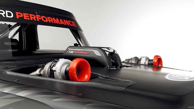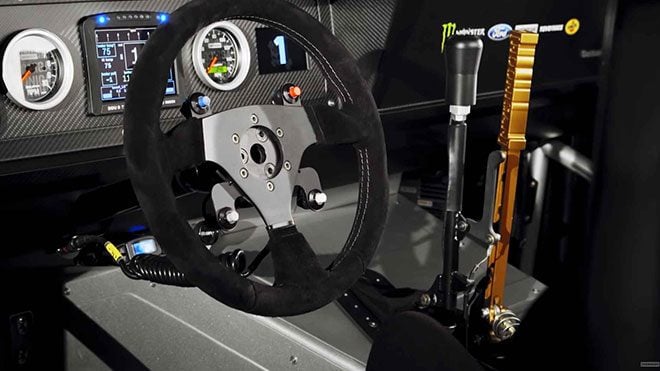 Twin-turbo destekli 3,5 litrelik EcoBoost V6 makinenin geldiği nokta şüphesiz fazlasıyla göz alıcı. Lakin işin içerisinde Ken Block gibi bir isim olduğu için, aracın en az sürücüsü kadar “yoldan çıkmaya” hazır olması gerekiyor. Yapım ve tamamlanma süreci tam tamına 2 yıl gibi çok ciddi bir zaman alan proje kelimenin tam anlamıya sıfırdan yaratılmış bölümler üzerine kurulu. Gövdesinde askeri amaçlar için geliştirilen hafif alaşım alüminyum malzemelerin kullanıldığı F-150, kendisini yere neredeyse sıfırlayan özel süspansiyon sistemiyle desteleniyor. 6 ileri değerli yine özel bir şanzımanın kullanıldığı modelde, tüm güç 20 inç’lik jant setinin kullanıldığı lastikler üzerinden yer aktarılmakta. Sözü daha fazla uzatmadan sizleri bu keyifli projenin detaylarını inlelemekle baş başa bırakalım.