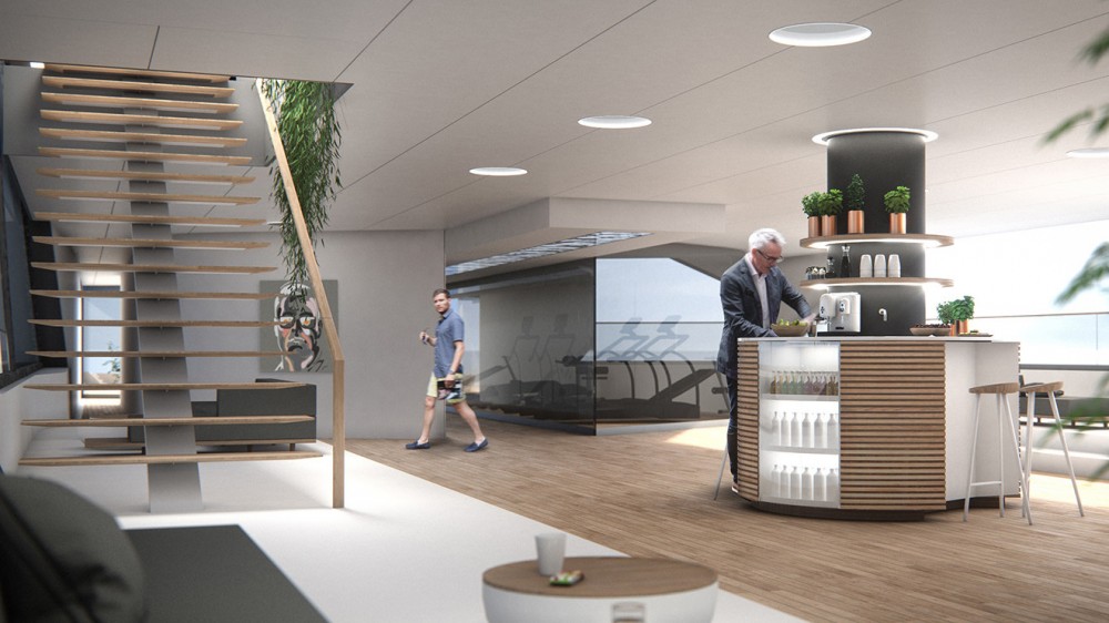 Megayatın donanımsal anlamda barındırdığı sürprizler sadece bahçe ile de sınırlı değil. Ayrıca kendi plajını da üzerinde barındıran yatta birçok farklı tecrübe ve hissi bir anda yaşamak mümkün. Tek parça gövdeye sahip olan yat, dışarıdan bakıldığında adeta lüks bir konaklama tesisini andırıyor. Yatın içerisinde yemek salonu ve Sonsuzluk Havuzu adı verilen 20 metrelik havuz dışında helikopterlerin de aktif olarak kullanabileceği bir pistte mevcut. Yat içinde öyle farklı ortamlara yer veriliyor ki adeta içeride ayrı dışarıda ayrı bir dünya, sahiplerini bekliyor. Henüz konsept aşamasında olan yatın üretiminin ardından ne derece talep göreceği ise merak konusu.