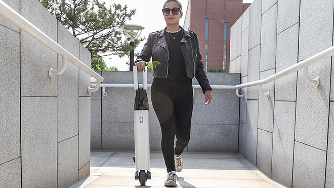 Elektrikli scooter modelleri şehir içerisindeki kısa mesafeli yolculuklar için elektrikli bisiklet ya da motosiklet modellerinden çok daha kullanışlı. Aynı zamanda büyük kapalı mekanlarda / depolarda da kullanımı artan bu modeller, taşıma kolaylığı açısından da dikkat çekiyor. Ancak her model, özellikle de elektrikli ve gelişmiş olanlar çok da taşınabilir tasarlanmıyor. Büyük piller ve sağlam gövde yapısı, çoğu modeli “portatif çizginin” dışına itiyor. Kickstarter’da aradığı desteği fazlasıyla bulan en yeni elektrikli scooter Mantour X ise taşınabilirlik konusunda farklı şekilde yaklaşıyor. Bu modelin ilk olarak katlanabilir bir gövdesi bulunuyor. Tam olarak 80.2 x 13.7 x 18 cm boyutlarında ve 7,3 kg ağırlığında olan scooter, farkını dikey olarak durabiliyor ve bu şekilde dengesini koruyabiliyor olmasıyla koyuyor. Evet bu modelin özel bir denge sistemi bulunuyor ve ön teker üstünde rahatlıkla istenilen yere götürülebiliyor. Yani modeli katladığınız zaman tüm ağırlığıyla taşımak zorunda kalmıyorsunuz. Model dikeyde kendi dengesini kurduğu için çok az bir efor sarf ederek yanınızda gezdirebiliyorsunuz. Özellikle toplu taşımaya binileceği zaman çok güzel duran bu altyapı, modeli ciddi anlamda çok kullanışlı hale getiriyor.