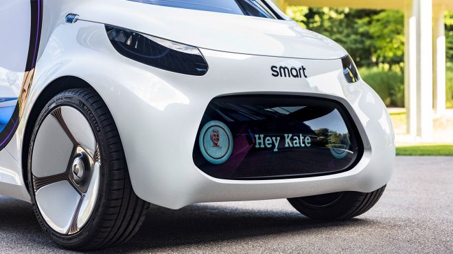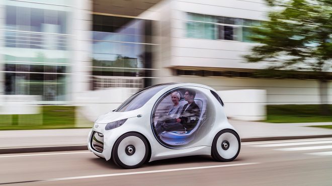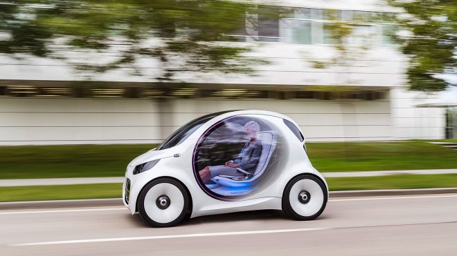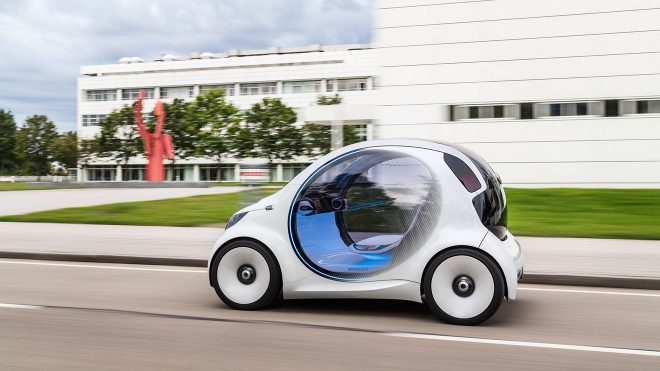 Geçtiğimiz Paris Otomobil Fuarı‘nda elektrikli ve sürücüsüz otomobil planlarının ilk gösterimini Generation EQ ile gerçekleştiren Mercedes-Daimler, 2017 bitmeden aileye bir üye daha ekledi. Grup dahilinde yer alan Smart‘ın başrolünü üstlendiği otonom sürüş odaklı konsept, geleceğin otonom sürüş teknolojisinde kullanıcıları ne gibi teknolojilerin beklediğinin en son örneklerinden. Smart CEO’su Annette Winkler’in; “Vision EQ konsepti bizim gelecekteki şehir içi ulaşım planımızı temsil eden en radikal konsept. Aracımız tamamen otonom ve elektrikli olmasının yanında iletişim kurulabilir ve kişiselleştirilebilir yapıda.” şeklinde tanımladığı proje, bu yılki Frankfurt Otomobil Fuarı’nın Smart için çok daha anlamlı geçmesine vesile olacak.