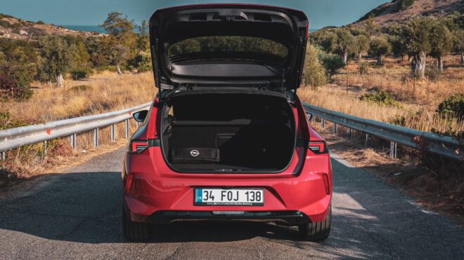 Kokpitteki değişimler elbette sadece ön tarafla sınırlı değil. Astra’nın dışta ebatsal olarak yukarıya taşınması, doğrudan iç yaşam alanını da ileriye götürüyor. Aracın ebatlarına baktığımızda; 4.374 milimetre uzunluğa, 1.860 milimetre genişliğe, 1.470 milimetre yüksekliğe ve 2.675 milimetre aks mesafesine sahip olduğunu görüyoruz. Ebatlardaki tüm bölümler, 14 milimetre aşağı çekilen yükseklik değerinin dışında ileriye taşınmış şekilde karşımıza çıkıyor. Özellikle aks mesafesindeki revizyonla arka taraftaki diz mesafesinde hissedilir iyileşme gördük. Bu artışlara paralel olarak bagaj hacmi de 50 litrenin üzerinde genişleyen Astra, 422 litrelik toplam kullanım alanı sunuyor. Bu değer 380 litre sunan VW Golf ve 411 litre sunan yeni Peugeot 308’in ilerisinde.