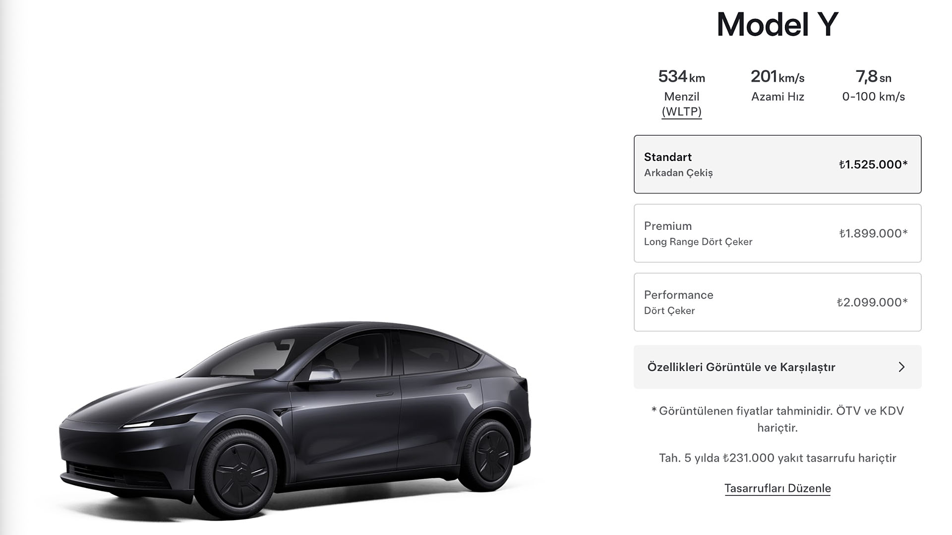 Kısa süre önce Model 3 Standard ile birlikte lanse edilen kırpılmış Tesla Model Y Standard için Türkiye fiyatı ve envanter tarihi açıklandı.