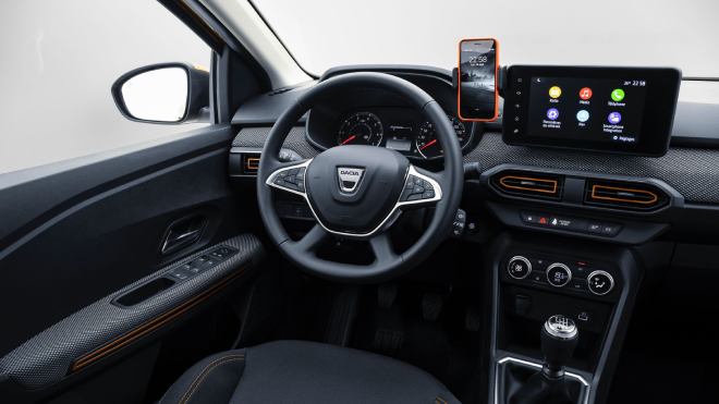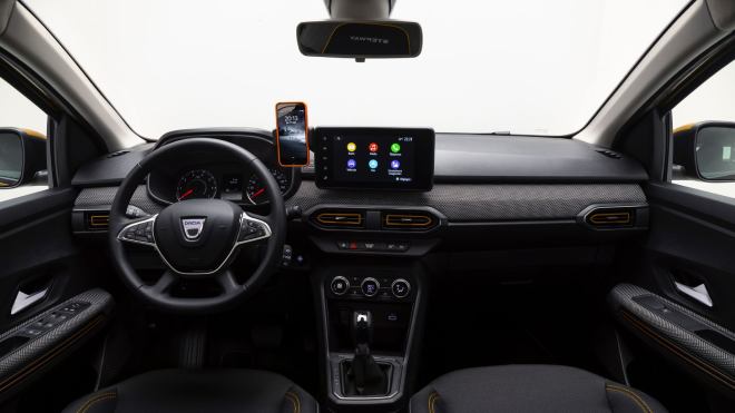 Kokpit kısmına geçtiğimizde bizleri belli başlı parçalarıyla yenilenmiş bir yapı karşılıyor. Konsolun merkezinde donanım seviyesine göre 8 inç ebatına kadar yükselebilen bir multimedya ekran konumlandırılıyor. Akıllı telefon entegrasyonu sunan bu ekranda modern bir yazılım desteği göreceğiz. Sandero ailesinin malzeme kalitesinin de hissedilir oranda artırıldığının özellikle altının çizildiğini belirtmeden geçmeyelim. Kokpitin donanım kısmında ise tamamen yeni bir otomatik klima sistemi, elektronik park freni, ısıtmalı koltuklar, geri görüş kamerası, hız sabitleyici ve otomatik uzun far gibi işlevsel parçalar kullanıcıları bekliyor olacak.