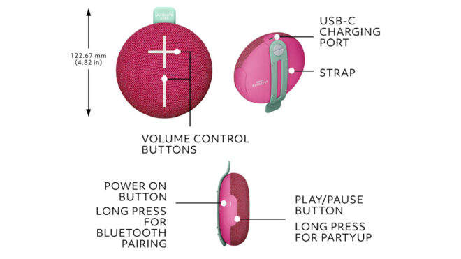 Ultimate Ears tarafından sunulan en küçük ve en uygun fiyatlı (80 dolar) Bluetooth hoparlör Ultimate Ears Miniroll, oldukça standart bir tasarıma sahip. Geniş ceplerde taşınabilecek kadar kompakt olan ve entegre bağlantı aparatıyla kemer gibi yerlere rahatlıkla tutturulabilen ürün, sadece 279 gram ağırlığında. Çapı 105 mm, kalınlığı ise 48 mm olan ürün, farklı renklerde geliyor ve IP67 sertifikasıyla suya (su altında 30 dakika boyunca kalabiliyor) ve toza belirli bir seviyeye kadar dayanıyor. Üstünde ses açma kapatma, Bluetooth bağlantı ve güç için toplam dört farklı buton bulunan Miniroll, USB-C üzerinden şarj edilebiliyor ve tam dolu şarjla 12 saate yakın bir dinleme keyif vadediyor. Bluetooth kullanım menzili 40 metre olarak açıklanan ürün, çoklu bağlantı desteğine de sahip. Bu sayede iki farklı Miniroll alınarak daha yüksek ses seviyesi elde edilebiliyor. Düşmelere oldukça dayanıklı olduğu aktarılan model, 45,6 mm aktif sürücüyle bir adet 37,75 mm x 65 mm pasif radyatörü bir araya getiriyor. Gövdesinin yüzde 40’ı geri dönüştürülmüş plastikten üretilen çevreci model, büyük ihtimalle ileride Türkiye’de de satılacaktır.