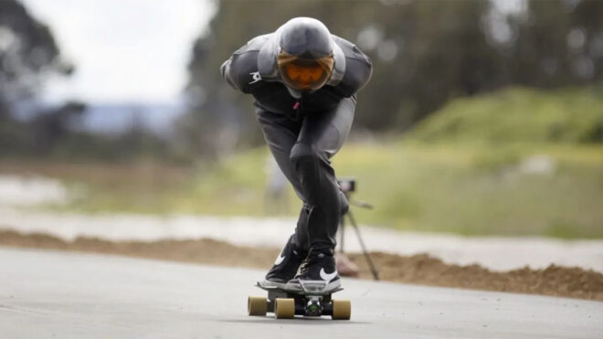 Korkusuz mühendis, elektrikli kaykay hız rekorunu kırdı