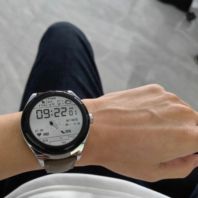 Bu arada son fotoğraflarda modelin ekranı siyah-beyaz olarak karşımıza çıkıyor. Kulaklıklar çok ciddi şekilde yer kapladığı için pili ufak kalan akıllı saat, ancak bu düşük enerji harcayacak renksiz ekran ile tatmin edici bir kullanım süresi sunabilecek izlenimi oluşturuyor.