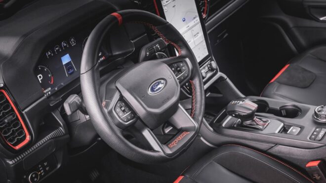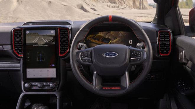 İkinci nesille birlikte dış tasarımdaki değişimlerin yanında en büyük hissedilir revizyonlar kokpit elemanlarında karşımıza çıkıyor. Yeni Ford modellerinde görmeye başladığımız ve konsolda dikey formda konumlanan 12 inçlik multimedya ekran buradaki ilk ayırt edici parça olacak. 12,4 inçlik tamamen yeni dijital sürücü paneli de güncel modellerde gördüğümüz kullanıcı deneyimini nihayet buraya da getiriyor. Araçta standart olarak sunulan; 32 inçlik arazi lastikleri, 17 inçlik jantlar, LED Matrix ışıklandırma grubu, ısıtmalı direksiyon simidi ve 10 hoparlörlü Bang & Olufsen ses sistemi de dikkat çekenler arasında. Fiyatları henüz açıklanmayan Ranger Raptor, önümüzdeki yaz döneminden itibaren yollara çıkmaya başlayacak.