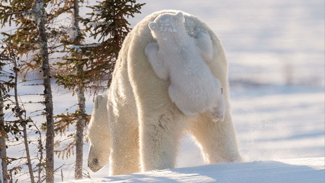 Fotoğrafçı Daisy Gilardini, geçen yıl 17 Şubat’tan 3 Mart’a kadar olan 13 gün boyunca, Kanada, Wapusk Mili Park’ında, anne kutup ayısı ve yavrularının mağaradan dışarı çıkmasını beklemiş. Gilardini’nin ifadelerine göre her yıl şubat ve mart ayları arasında, kasım ayında doğum yapan anne kutup ayıları, yavruları ile birlikte mağaralarını terk ediyor. Kutup ayılarının mağaradan çıktıkları bu tarihlerde bile bu olaya şahit olmanın çok zor olduğunu belirten fotoğrafçı, meslektaşlarının son derece çetin doğa koşullarına göğüs germek zorunda olduklarını da sözlerine ekliyor.