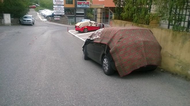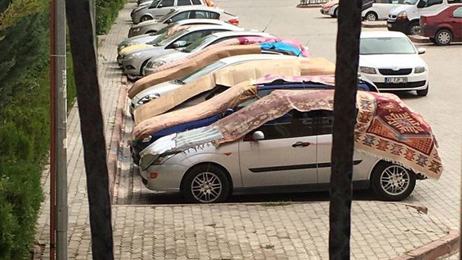 Yakın zamandaki senaryonun tekrar gerçekleşmemesi için harekete geçen araç sahipleri, birbirinden ilginç yöntemlerle araçlarını doluya karşı korumaya aldı.