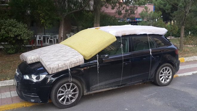 Geride bıraktığımız Temmuz ayının son haftası içerisinde meydana gelen dolunun ardından özellikle İstanbul’da boyutları korkutucu rakamlara ulaşan bir bilanço ortaya çıkmıştı. Yaklaşık yüz elli bin aracın hasar gördüğü afette, araçların yanında binaların dış cephelerinde de mermiyi andıran izler evlerin adeta savaştan çıkmış gibi görünmesine neden olmuştu. Aradan geçen bir aylık zaman diliminin ardından bugün için beklenen ve uyarıları dün itibarıyla yapılan yeni bir yağış gündemde. İstanbul Büyükşehir Belediye Başkanı Kadir Topbaş’ın toplu taşımaların tercihi konusunda uyarı yaptığı bugün için, İstanbul’da yaşayan araç sahipleri de hummalı bir hazırlık gerçekleştirdiği. Hazırlıkların sonrasındaysa ortaya pek sık göremeyeceğimiz görüntüler çıktı.