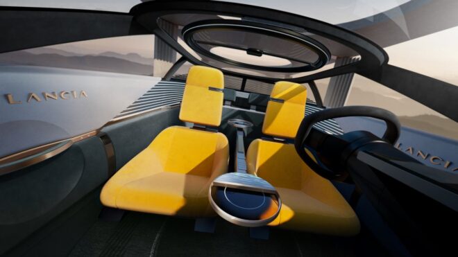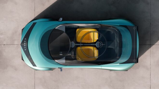 Gövdede kullanılan tasarım çizgilerinde ise yine Flaminia ile birlikte Aurelia’dan esinlenme vurguları dikkat çekiyor. Projenin ön bölümünde kullanılan üç formlu ışıklandırmanın merkezi, bizleri klasik Lancia otomobillerine götürüyor. Arka taraftaki yuvarlak formlu LED stop grubu ise motor sporlarına damga vuran Stratos’a selam niteliğinde. Projenin adında kullanılan HPE ise elektrifikasyon ile yine markanın geçmişinin ortak noktası olacak. İlk olarak 1970’te Beta için “High Performance Estate” versiyonunda kullanılan bu rozet, burada ise “High Performance Electric” olarak geleceğe taşınacak. Grubun bir diğer İtalyan üreticisi olan Alfa Romeo da benzer bir dokunuşu araç içi mod sistemi olan D.N.A için yapmış, Tonale PHEV’deki “A” modunu “Advance Efficiency” olarak elektrikli sürüşe taşımıştı.