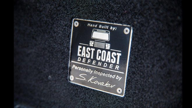 East Coast Defenders ekibi tarafından tamamen el yapımı olarak geliştirilen proje el işçiliğinin yarattığı kalite algısını özgün tasarım parçalarıyla bir araya getiriyor. Dış yapısında olduğu gibi güç ünitesinde de sıra dışı bir ünitenin görev yaptığı araca 6.2 litre hacimli V8 Chevrolet LS3 motorunu entegre eden ekip bu motordan 430 beygirlik bir güç elde ediyor. Altı ileri otomatik şanzımanla kombin edilen projede süspansiyonlardan diferansiyele, çekiş sisteminden tekerleklere tüm altyapı sistemi maksimum arazi performansının sunulması adına bir araya getiriliyor. 20 inçlik jantların görev yaptığı aracın dış bölümüde LED ışıklandırma grubu, vinç ve roll cage gibi parçalar ön plana çıkıyor.