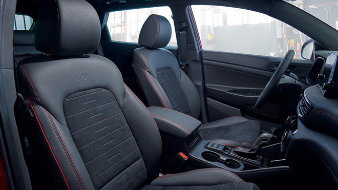 Tucson’un alışageldiğimiz iç mekanına baktığımızda ise, N dokunuşuyla birlikte siyahla bezenmiş sportif öğeler karşımıza çıkıyor. Ortaları nubuk ve kenarları deri, kırmızı dikişli özel tasarım siyah döşeme ile sunulan model, Hyundai’nin yüksek performanslı ürün yelpazesinden esinleniyor. Kırmızı dikişli ve deri döşemeli kokpitin yanı sıra deri direksiyon simidi, sportif alüminyum pedal seti, N logolu vites topuzu ve mat gri plastik aksamlar da sportif bir ambiyansa katkıda bulunuyor. N-Line tasarım ve donanım özelliklerinin yanı sıra ayrıca özel süspansiyon sistemiyle de sportif sürüş zevkini arttırıyor. Arkada yüzde 5, önde de yüzde 8 daha sert helezon yaylarıyla, virajlardan beklentileri fazla olan kullanıcılara daha fazla geri bildirim veren bir süspansiyon ile sunuluyor. N modellerine özel bir renk olan “Gölge Gri”, Tucson’un renk paletinde de yerini alıyor ve 4 farklı renk ile satışa sunuluyor.