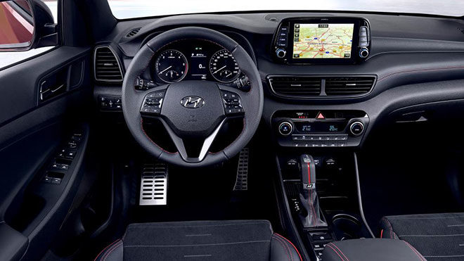 N-Line; Türkiye’de mevcut bir donanım seviyesinin gövde kiti olmak yerine, alternatif bir donanım olarak sunuluyor. Ana strateji olarak N-Line modelinin Elite ve Elite Plus arasında bir alternatif olarak değerlendirildiği söylenebilir. Donanım olarak N-Line’a özgü sportif gövde kitinin dışında; Elite modeline ek olarak Full LED ön farlar, LED arka stoplar, akıllı bagaj kapağı, elektrikli sürücü koltuğu gibi tasarım ve konfor öğelerini de bünyesine katıyor. Tucson N-Line, güncel versiyondan farklı olarak, dış tasarımdaki petek tarzı ön ızgara, siyah eklentilere sahip ve bumerang şekilli gündüz sürüş farları ile süslenen ön tampon ve 19 inç’lik parlak siyah jantlarla sunuluyor.