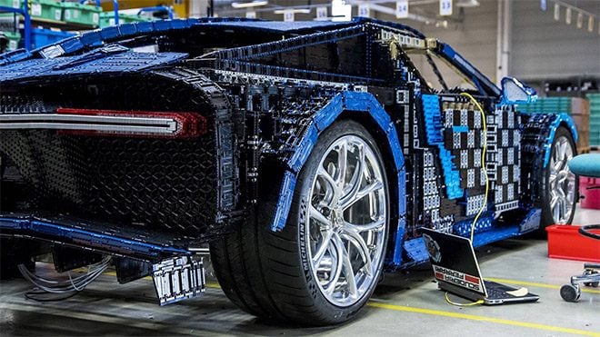 Üzerinde kendine ait bir motorun bulunduğu LEGO Technic’in Bugatti Chiron, boyutlarıyla orijinal versiyonla birebir benzerlik gösteriyor.