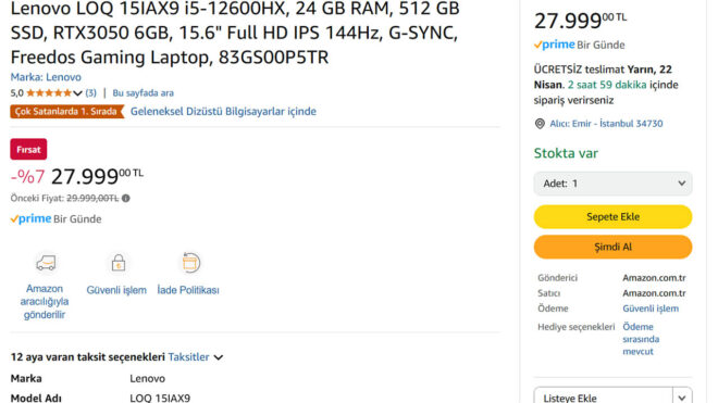 Lenovo LOQ 15IAX9 oyuncu dizüstü bilgisayarı için yeni bir fırsat var. Bilgisayar Intel Core i5-12600HX işlemcisiyle geliyor.