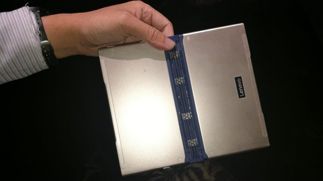 Tıpkı Moto Z gibi oldukça ince bir yapıda olan tablet, ortadan ikiye katlanıyor. Katlandığındaysa Samsung’un Edge ekranında olduğu gibi katlanan kısımda hızlı erişim çubuğu ortaya çıkıyor. 2 GB RAM ve 16 GB depolama alanını bünyesinde barındıran cihaz prototip aşamasında olduğu için şu anda göze pek fazla hitap etmiyor. Geliştirilen bu cihazın maliyetinin bin doların üzerinde olduğu düşünülüyor. Gösterilen katlanabilir telefon ise bükülerek bileğe yerleştirilebiliyor ve böylece bileklik gibi kullanılabiliyor. Bu cihazla ilgili fazla bir bilgi ise mevcut değil. Gelişimi tüm hızıyla süren cihazların satışa sunulması için en az 3 yıl gibi bir süreye ihtiyaç duyulacağı dile getiriliyor.