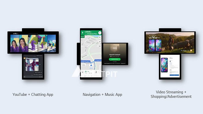 5 Ekim tarihinde resmi olarak lanse ediliyor denilen LG Wing, artık biliyorsunuz yukarıda gördüğünüz dönen ekranlı bir tasarımı benimsiyor ve bu açıdan çok farklı bir seçenek oluşturuyor. Normalde dikey olan ana ekran dönerek yatay hale geliyor ve böylece alttaki ufak boyutlu ikinci ekran ortaya çıkıyor. İşte bu yapı iki farklı kilit kullanım senaryosunu getiriyor. Sızan aşağıda gördüğünüz görseller de bunları gözler önüne seriyor. Telefon satışa çıktıktan sonra artacak bu senaryolardan ilkinde çiftli uygulama kullanımı karşımıza çıkıyor. Yani kişiler üstteki yatay ekranda başka uygulama, alttaki dikey ekranda ise başka uygulama açabiliyor ve ikisini de aktif olarak kullanabiliyor. Ya da örneğin yukarıdaki yatay ekranda YouTube videosu izlenirken aşağıdaki ekranda izlenilen videonun yorumlarına bakılabiliyor. Burada firma özellikle çiftli uygulama kullanımına odaklanıyor. Bu yapı zaman zaman büyük kolaylık getirecek gibi görünüyor.