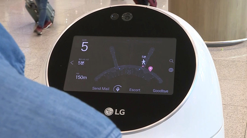 LG’nin Havaalanı Rehber Robotu, yolculara havaalanında en çok kullanılan dört dil üzerinden (İngilizce, Çince, Japonca ve Korece) sesli yanıt vererek yardım ediyor. Robot, havaalanının merkezi sunucusuna bağlanarak uçağa biniş zamanları, restoranların ve dükkanların yerleri ile diğer birçok konu hakkında bilgi sağlayabiliyor. Biletinizi kolay bir şekilde tarattığınızda, uçağa biniş saati, kapısı ve hatta gideceğiniz yerin hava durumu hakkında ayrıntılı bilgiye kolayca ulaşabilmenizi sağlıyor. Bu robot, yürüme sürenizi de hesaba katarak, kapıya tahmini varış sürenizi hesaplayabiliyor ve havaalanı içinde gitmek istediğiniz yere kadar size eşlik edebiliyor. Havaalanı Temizlik Robotu, LG HOM-BOT’un güçlü temizlik performansını, otonom yol bulma becerisini ve nesneleri algılama yeteneğini kullanarak bunları ticari ve halka açık bir ortama uyarlıyor. Bu robot en çok temizliğe ihtiyaç duyulan alanları belirleyerek bunları veri tabanında saklıyor ve bu alanlara gidebilecek en etkili rotaları belirliyor. LG, bu havaalanı robotları ile gelecekte ticari robot faaliyetlerini geliştirme ve genişletme girişimine verdiği önemi de net bir şekilde ortaya koyuyor