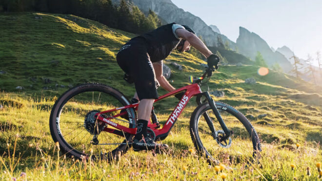 En yeni elektrikli bisiklet modelleri arasında yer alan Avrupa merkezli Thömus imzalı Lightrider E Ultimate, çift süspansiyon sistemine sahip eMTB sınıfının en hafif modelleri arasına giriş yapıyor. Toplam ağırlığı spesifik olarak 14,8 kg seviyesinde olan bisiklet, tahmin edebileceğiniz üzere karbon fiber bir gövde üzerine kuruluyor. Birçok rakibinden yaklaşık 5 kg daha hafif olduğu aktarılan model, yapılan açıklamaya göre 220W gücünde Bikedrive Air isimli bir elektrik motoru taşıyor. Bu 3,5 kg ağırlığındaki motor ile 30 Nm tork getiren ve pedal desteği ile 25 km/s yasal hız limitine vurabilen araziye özel model, 36V/250-Wh pil paketi ile geliyor. Bu pil ile ne kadar menzil elde edilebildiği net olarak açıklanmıyor. Sadece pilin 3,5 saat içerisinde tamamen doldurulabildiği aktarılıyor.