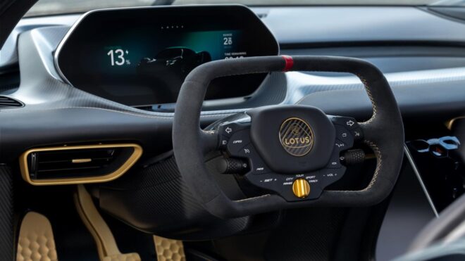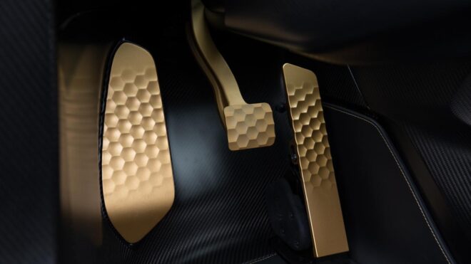 Marka için keyifli bir kutlama mesajı olan bu versiyon, “72” sezonunda 25 yaşında iken F1 Dünya Şampiyonluğu yakalayan Brezilyalı Emerson Fittipaldi için de güzel bir zaman yolcuğu niteliğinde. O dönem, tarihte bu ünvanı elde etmiş en genç pilot olan Fittipaldi’nin kullandığı Lotus 72, bugün Evija’nın üzerinde el işçiliğiyle beliren altın çizgileriyle yeniden hayat buluyor. Toplamda sadece sekiz adet üretilecek olan ve tamamı şimdiden satılan modelde, jantlar ve fren kaliperleri de altın sarısından yansımalar taşıyor. Kokpite geçtiğimizde de yine sarı çizgilerin keyifli şekilde geneli tamamladığı bir yapı söz konusu. Bolca karbon fiberin ön planda olduğu kabinde, pedallarda da sarı renk nefis işlemelerle kendisini gösteriyor.