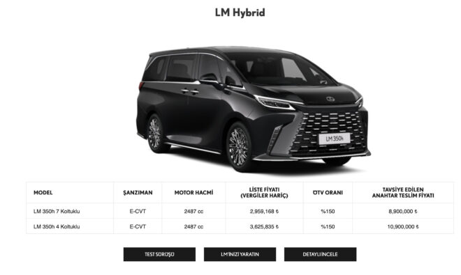Markanın amiral gemisi modellerinden biri olan Lexus LM Hybrid, yakında inanılmaz yüksek bir fiyat üzerinden Türkiye yollarında da olacak.