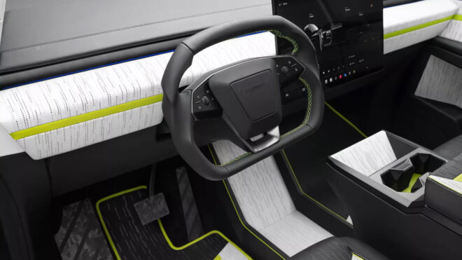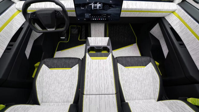 Tesla Cybertruck, köşeli çizgileri nedeniyle genel olarak beğenilmeyen bir araç. Tasarımı hâlen tartışma konusu olan model, Almanya merkezli Mansory’nin dokunuşuyla daha dikkat çekici hâle getirildi. “Elongation Evo” adı verilen model, ilk aşamada dövme karbon fiber gövdesi, tavan ışıkları, 26 inç boyutundaki devasa jantları ve yanlara konumlandırılan ufak rüzgârlıklarıyla dikkat çekiyor. Yapılan eklemelerle daha sportif hâle getirilen aracın dışı kadar içi üzerinde de ciddi çalışmalar yapılmış. Koltukları, kapı içleri ve konsolu noktalı bir desenle kaplanan araçta, “siyah, beyaz ve sarı” renkler kullanılarak özel bir tema oluşturulmuş. Şu anda yalnızca tek bir örneği bulunan Mansory imzalı Cybertruck, Orta Doğu pazarına yönelik olarak hazırlanmış.