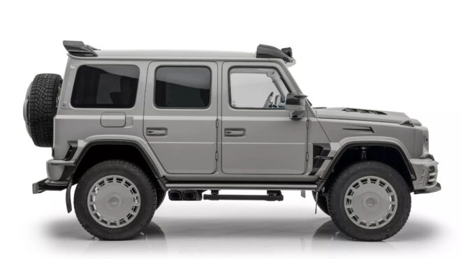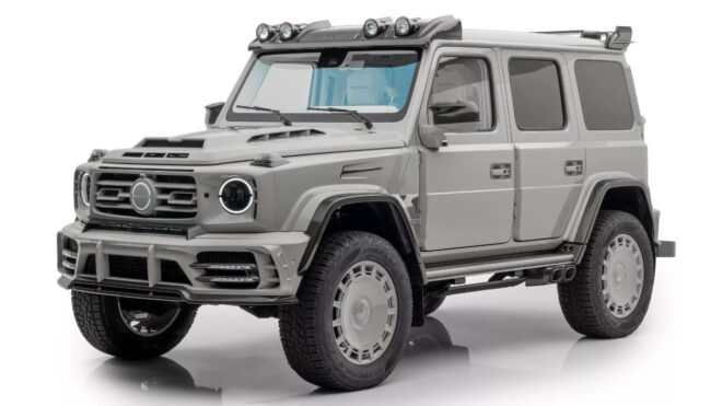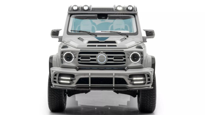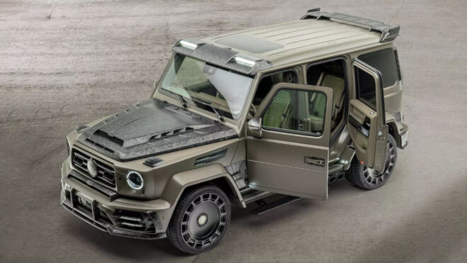 Markadan bundan önce aşağıdaki galeride görebileceğiniz Mercedes-AMG G63 4×4² gelmiş, bu araç son dönemde gördüğümüz en etkileyici Mansory projeleri arasında yer almıştı. Normal hali bile etkileyici G63’ü alarak adeta bir askeri araç haline getiren firma, yerden oldukça yükselttiği aracı ile her türlü koşulun altında kalkabilecek bir seçenek sunuyor. Arkasına bir rüzgarlık dahi konulan model, 22-inç boyutunda FD.15 jantlar ve 325/55R22 off-road lastikleri üzerinde yol alıyor. Metal tampon güçlendirmelerine ve güçlü ekstra LED aydınlatmalara sahip olan G63 4×4², aktarıldığı kadarıyla gücünü özel modifiyeli çift turbo destekli V8 motordan alıyor ve 838 beygir güç ile tam 1.000 Nm tork getiriyor. 0’dan 100 km/s hıza çok heybetli olmasına rağmen sadece 4,5 saniyede çıkabilen dev araç, 210 km/s hızın üstüne çıkamıyor, burada olası risklere karşı dijital bir limit uygulanıyor.