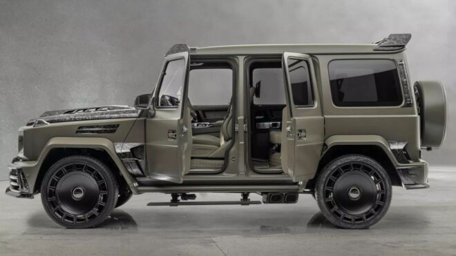 Mercedes-AMG G63 Grand Entrée, isminde de geçtiği üzere direkt olarak Mercedes-AMG G63 üzerine kurulan çok özel bir model. Toplamda sadece 10 adet üretilecek araç, yukarıdaki galeride görebileceğiniz üzere inanılmaz kaslı ve kışkırtıcı bir gövde üzerine kuruluyor. Arka kapıları terse açılan (Suicide Door) açılan araç, özellikle açıkça sergilenen dövme karbon fiber parçalarıyla öne çıkmayı biliyor. Genel olarak bir askeri araç havasında tasarlanan model, gücünü 4.0 litrelik çift turbo destekli V8 motordan alıyor ve bu özel modifiye edilen motorla 850 beygir güç ve tam 1.000 Nm tork getiriyor. Bu yüksek güç ile devasa aracın 0’dan 100 km/s hıza ulaşması sadece 3,5 saniye sürüyor. Bir fiyat bilgisinin paylaşılmadığı araç, yeşil tonun ağır bastığı oldukça lüks ve modern bir yaşam alanına sahip. Bir rüzgarlığın dahi eksik edilmediği Grand Entrée, daha iyi arazi eğlenceleri için tavanında güçlü bir LED ışık sistemi de taşıyor.