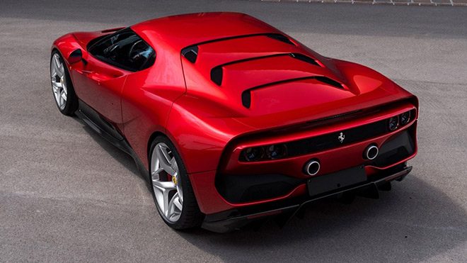 Enzo’nun elinin değdiği son otomobil olarak hafızalarımızdaki yerini koruyan F40‘a ithafen geliştirilen SP38’den sadece tek bir örnek olarak podyumda olacak. 488 GTB tabanlı olarak geliştirilen modelin motor bölümünde, standart versiyonda yer verilen 3,9 litrelik sekiz silindirli makinenin birebir şekilde korunduğunu görüyoruz. Bu da 661 beygirlik güçte herhangi bir değişim olmadığının işareti. SP38’in en ayırt edici noktasıysa hemen fark edilebileceği gibi tasarımı. Ön bölümünde yer verilen ince farları ve agresif yapılı karbon fiber tampon eklentisi araca, Japonya’ya özel olarak geliştirilen J50‘de olduğu gibi ortaya çok ciddi bir karakter koyuyor. Arka bölümde de yeni jenerasyon modellerinde pek fazla görmeye alışık olmadığımız kapalı bir yapıyla tamamlayan Ferrari, egzoz çıkışlarına ise entegre şekilde yer veriyor. Kokpit detaylarıyla ilgili henüz detayların paylaşılmadığı S38 26 Mayıs’ta gerçek dünyada karşımızda olacak.