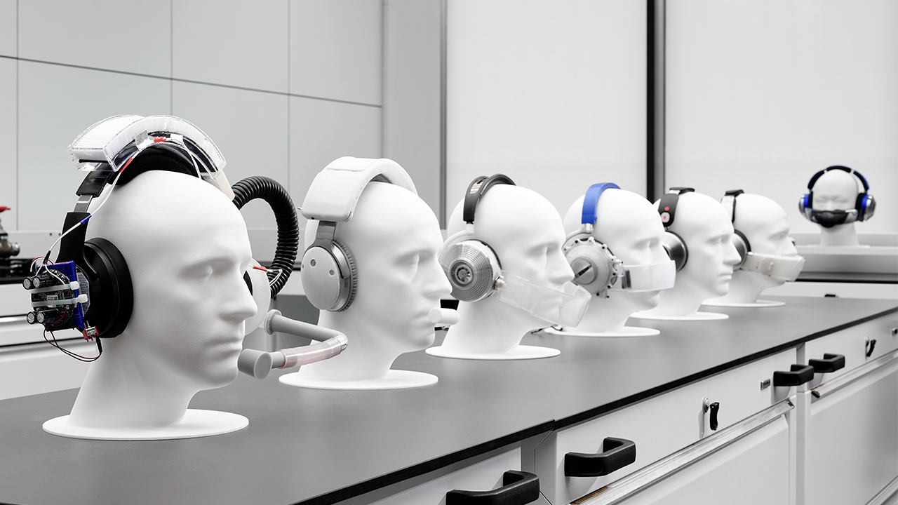 Kulaklıktaki kompresörler, çift katmanlı filtrelerden hava çekiyor ve temassız vizörden kanalize edilen iki temizlenmiş hava akışını kullanıcının burnuna ve ağzına yönlendiriyor. Vizör üzerindeki şekillendirilmiş kanallar, temizlenmiş hava akışının burun ve ağza yakın tutulmasını ve rüzgârdan mümkün olduğunca az etkilenmesini sağlıyor.”