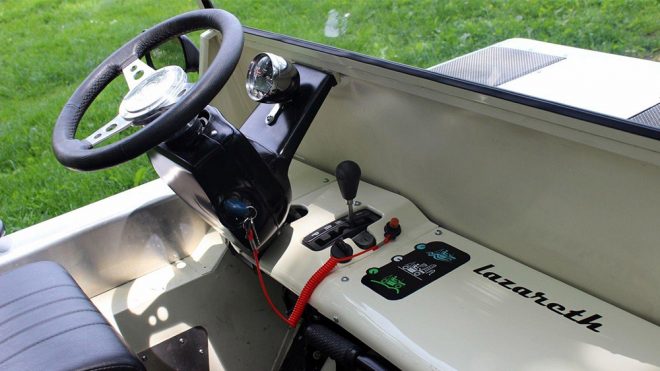 Projenin ardından The Lazareth Moke adıyla tekrar yollara çıkan araçta 400cc‘lik tek silindir ve su soğutmalı bir motora yer veriliyor. Normal koşullarda 19 beygirlik bir güç üretebilen bu motor, araç suya girdiğinde 6 beygirlik bir güçle aracın itişini sağlıyor. Hız değerleri de ortama göre değişiklik gösteren Lazareth Moke, karada 90 km/s hıza çıkabilirken bu değer suda 13 kilometre olarak değişiyor. Dört tekerlekten çekişli altyapı ve otomatik şanzımanla bu gücünü aktaran aracın suda kullanımı için ekstra bir lisans almaya gerek olmadığını belirtmekte fayda var. Toplam ağırlığı sadece 440 kilogram olan Lazareth Moke’un tek şarjla 145 kilometre menzil kat edebilen elektrikli versiyonunu Amerika’da yaklaşık 16 bin dolardan satışa sunan Lazareth, geleneksel yapıda olanın fiyatıyla ilgili bilgiyse henüz paylaşılmış değil.